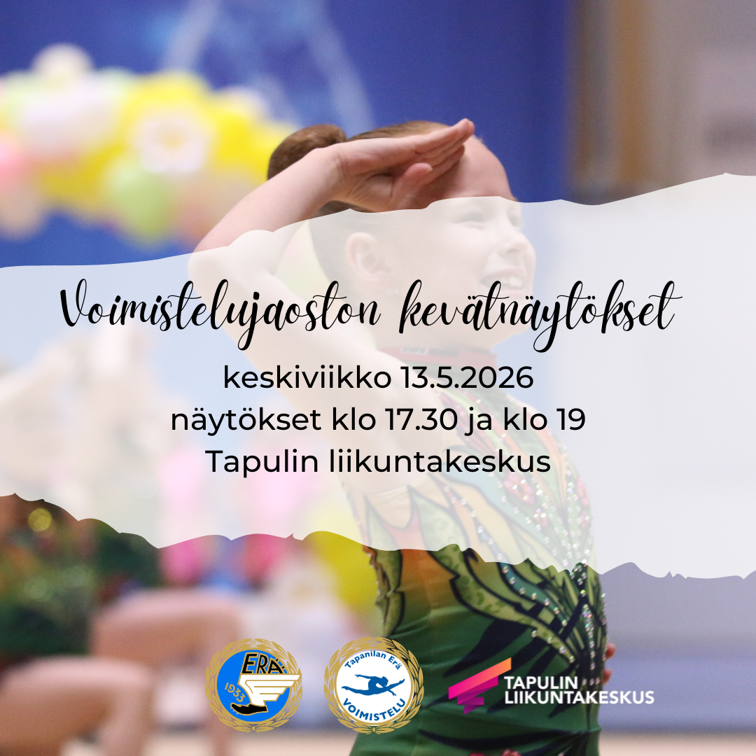 Ilmoittautumiset kevätkauden (7.1.-17.5.2026) ryhmiin ovat käynnissä. Ilmoittautumiset syyskauden (31.8.-13.12.2026) ryhmiin alkavat keskiviikkona 10.6.2026. Kysy lisää toiminnastamme voimistelu@tapanilanera.fi.